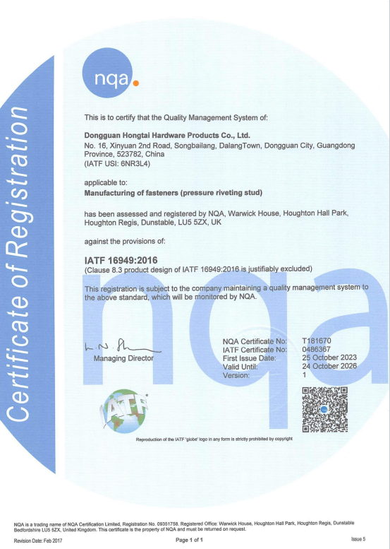 東莞市紅泰五金制品有限公司,公司占地六千多平方米,擁有五十多組螺絲機及六十臺自動車床設備。是一家專業(yè)設計、生產ISO、DIN、GB、JIS、ANSI、BS及客戶指定特殊要求的高精密五金緊固件的制造企業(yè)。